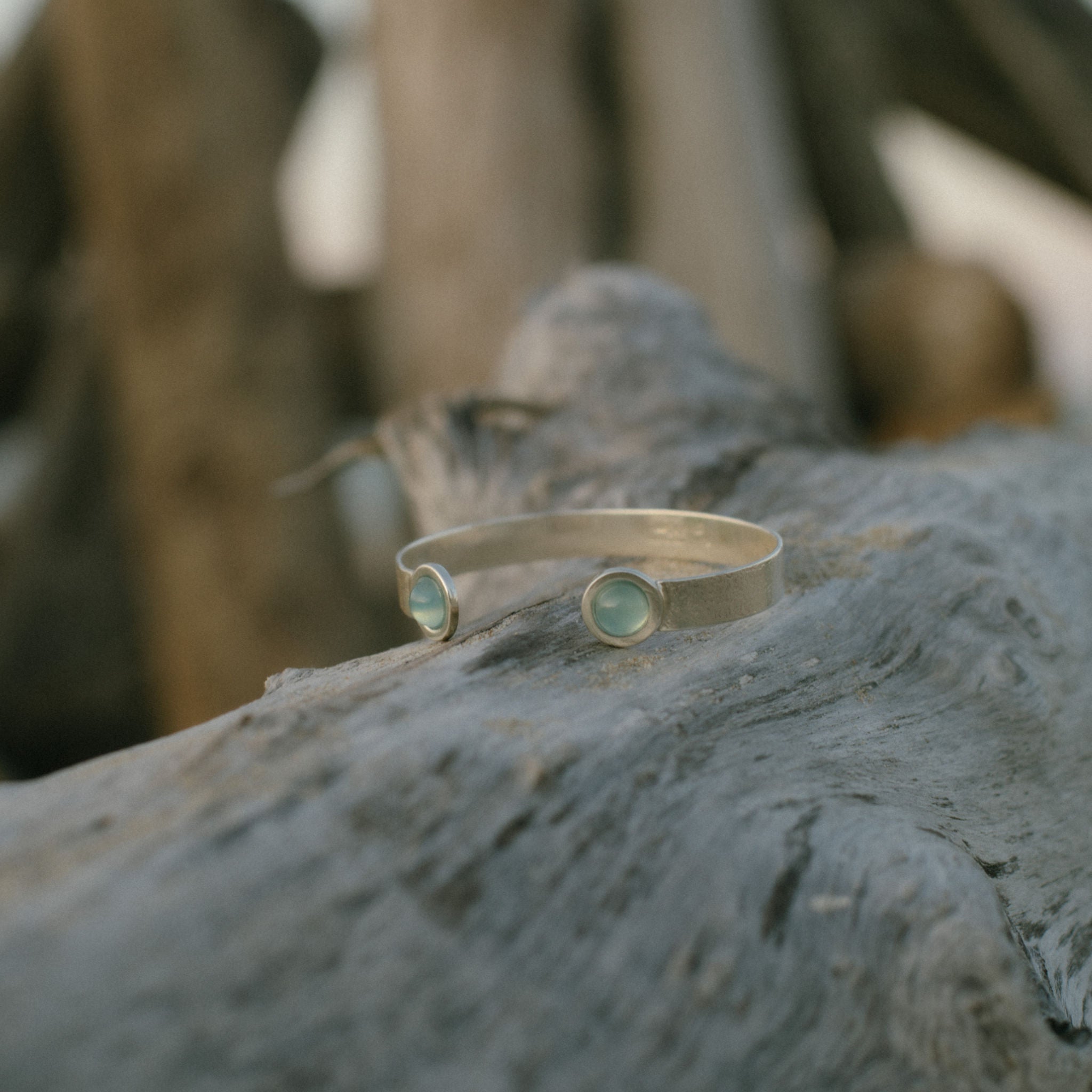 Bracciale in argento con acquamarina, una pietra composta da una varietà di berillo blu-verde.