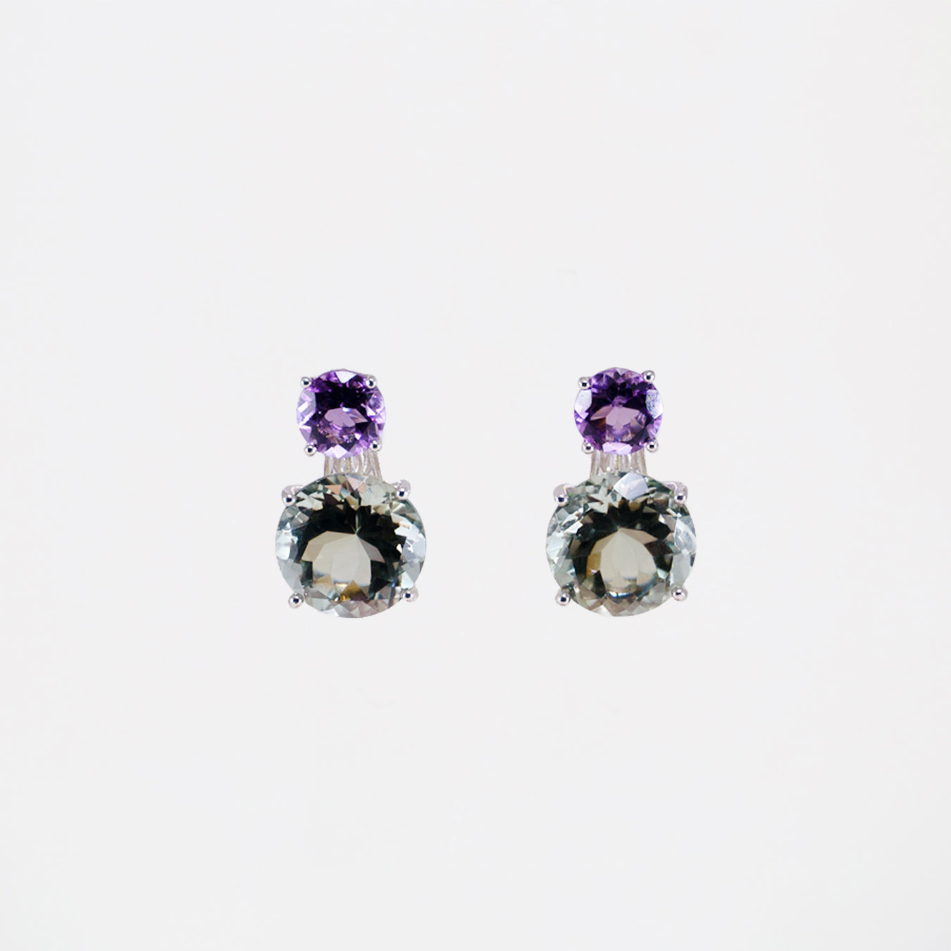Prasiolite (verde) diametro 14 mm; Ametista (viola) diametro 8 mm