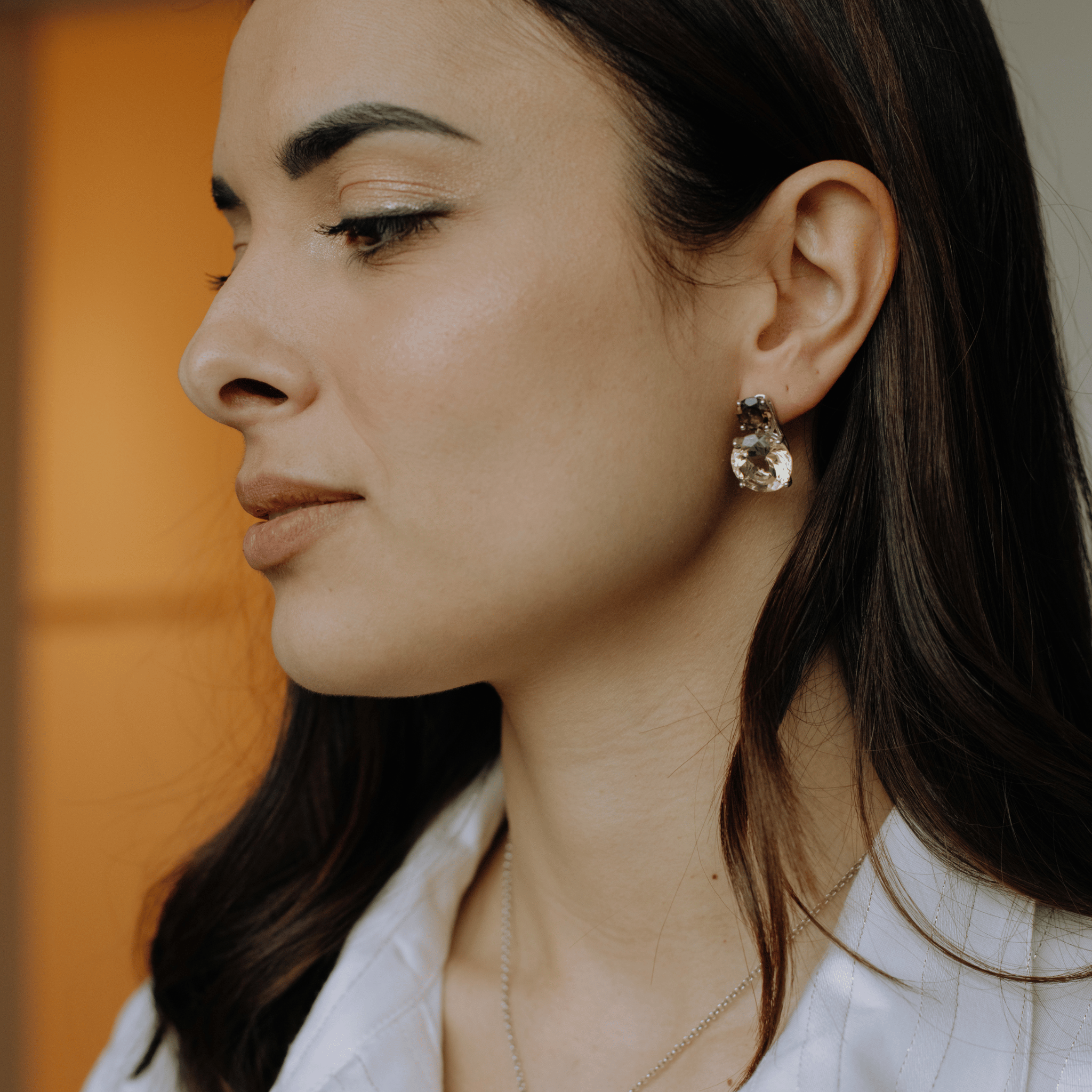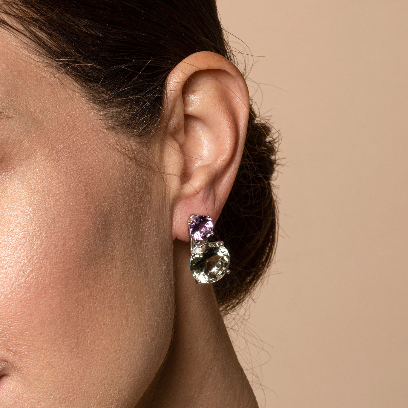 Gli orecchini Iris sono realizzati con il quarzo naturale più pregiato, selezionato per la sua brillantezza e intensità di colore.