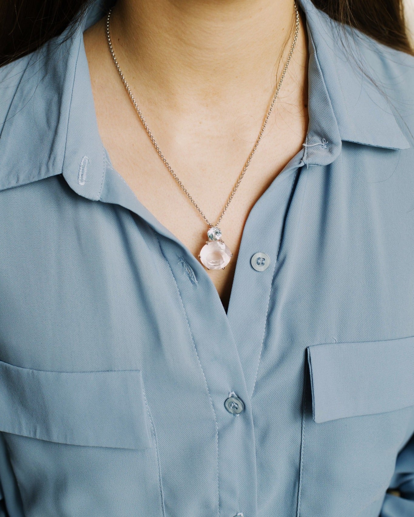 Quarzo rosa (rosa) da 18 mm e topazio (blu) da 8 mm