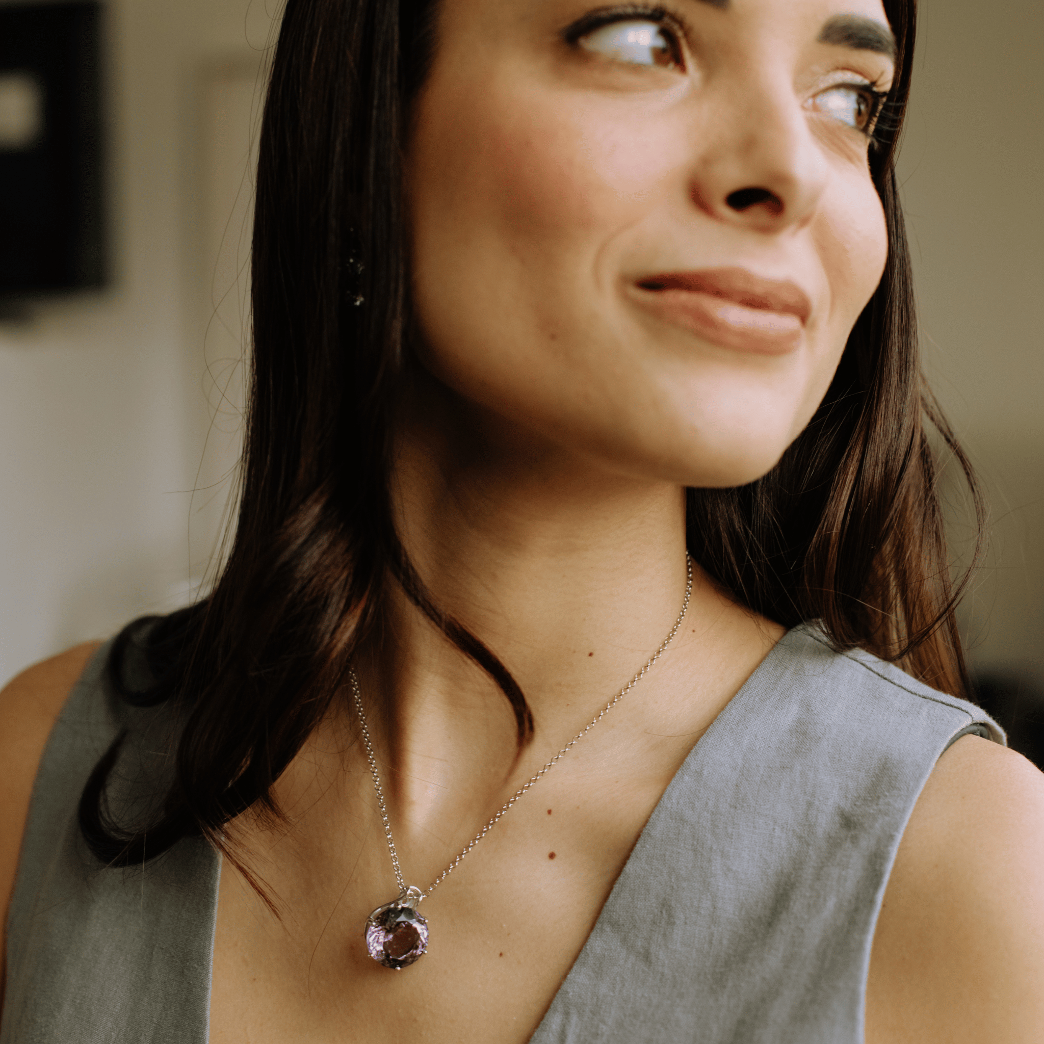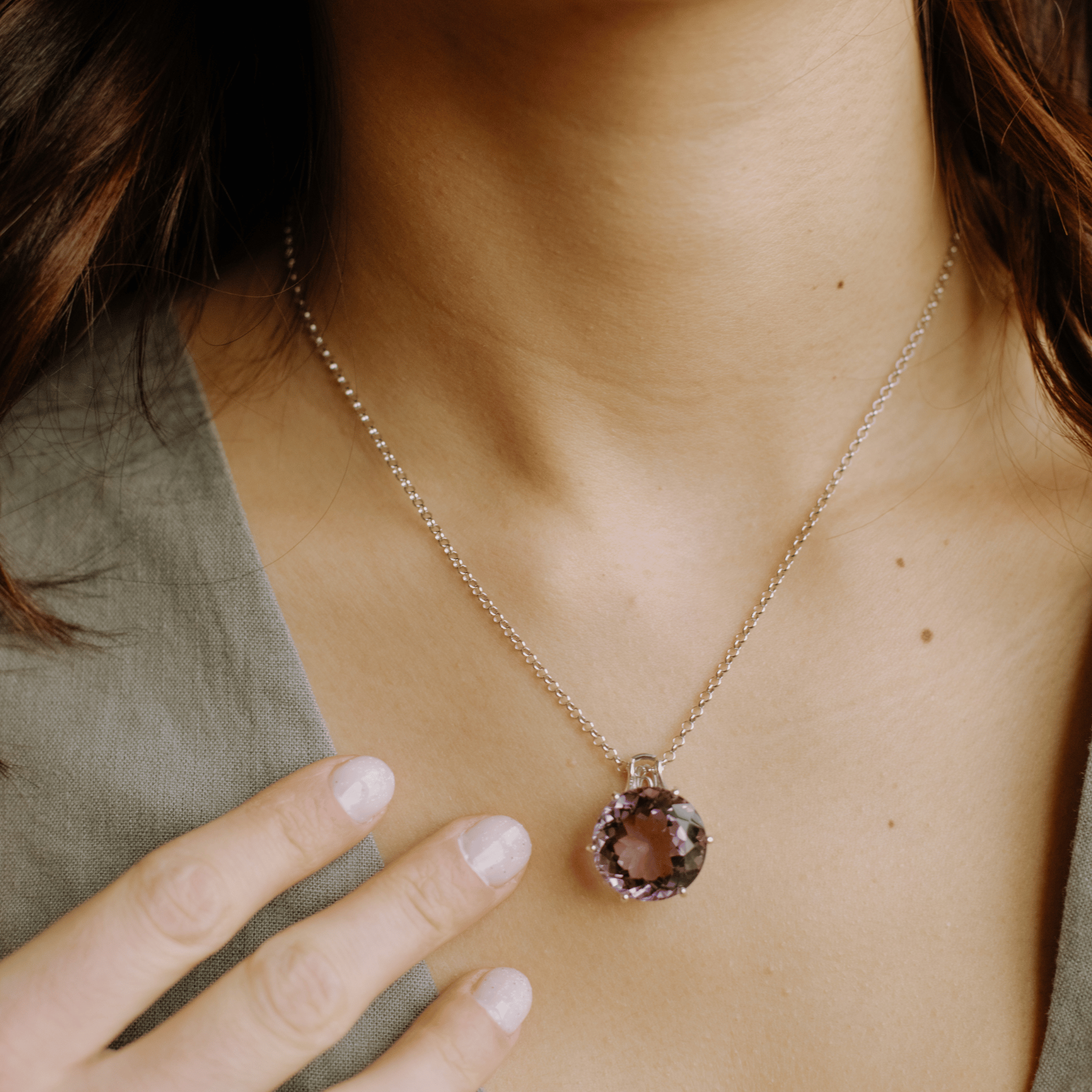I pendenti Iris rompono il classicismo del tema del solitario incastonando una pietra extra-large. Scegli il tuo preferito da un arcobaleno di quarzi naturali selezionati per la loro brillantezza e intensità di colore.